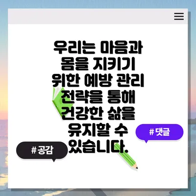 우리는 마음과 몸을 지키기 위한 예방 관리 전략을 통해 건강한 삶을 유지할 수 있습니다.