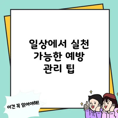 우리의 일상 속에서 예방 관리를 실천하는 것은 건강한 삶을 영위하는 데 필수적입니다. 중요한 점은 실천 가능한 작은 변화에서부터 시작할 수 있다는 것입니다.